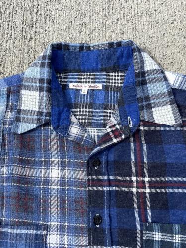 それぞれ別の個体のUsedネルをバラバラにし、パッチワークした生地を使用し再構築したワークシャツ。