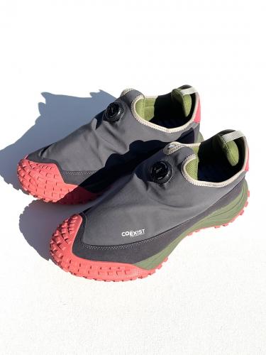 フリーロックシステムのダイヤル式シューレースを採用し、アッパーにはCMFによる新開発生地のCOEXIST 3 レイヤー耐水 20000 透湿 20000の素材を使用したトレッキングシューズ。