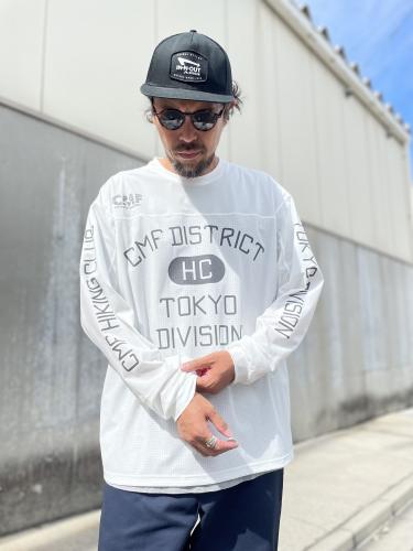 CMFのオリジナル生地のドライドットにて製作した、モトクロスTeeモチーフのロングスリーブTee、"BMX Tee"。