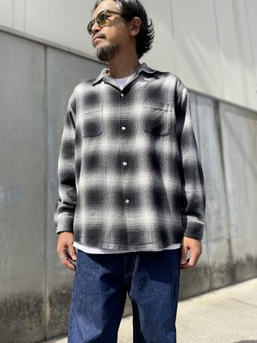 【TOWNCRAFT】 Flannel Check Loop Collar L/S Shirt (Cotton Ombre Flannel) "Off White × Black"