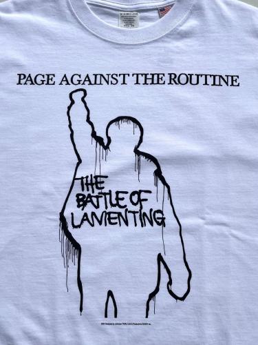 フロントに大胆に某バンドを彷彿とさせる、オマージュデザインのプリントを施したロングスリーブTシャツ。
