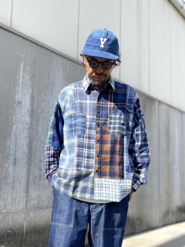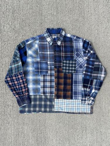 それぞれ別の個体のUsedネルをバラバラにし、パッチワークした生地を使用し再構築したワークシャツ。