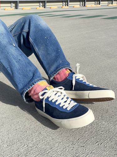 スケートシューズをベースにしたオーセンティックなデザインが魅力1足で、複数のブルー系カラーを組み合わせたアッパーは、派手すぎず上品な配色。