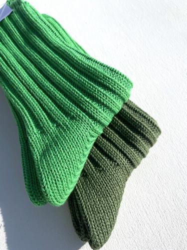 一般的なリブソックス約5足分の糸を使用し、旧式の機械で編み立てた拘りの一足。