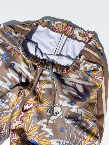 宇宙と空と海... パラレルワールドへ繋がる寸前の一瞬の様な、ある種クレージーな世界観をグラフィカルにトロピカルタッチで描いた美しい情景をプリントしたオリジナルジャージ素材を使用したショーツ、"宇宙空海ジャージショーツ"。