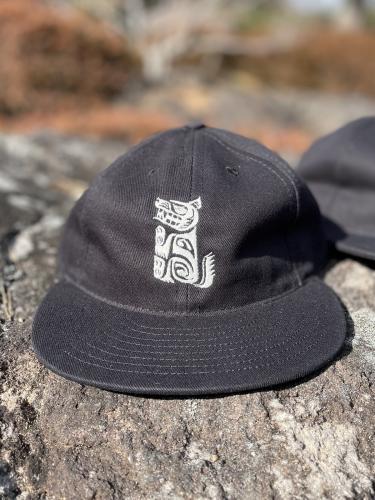 今回ベーシックなブルックリンスタイルをベースに、NAT-U-RALオリジナルデザインで、アメリカノースウェストインディアンのハイダ族のアートモチーフの"Wild Dog"を、フロントに刺繍で入れて作って頂きました。