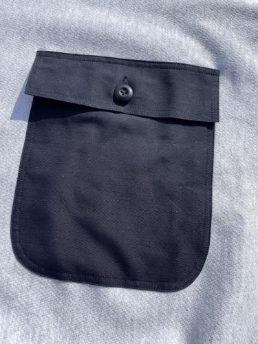コットンリップストップの生地を使用し、右肩にガンパッチとフロントにはフラップポケットを装備しました。