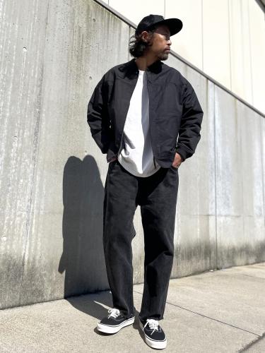 デザインの特徴と言えるキャップショルダーの肩の切り替えのパターンを調整し着用時にスッキリしたラインに、ルーズフィットのシルエットは、当時のXLサイズをベースに袖丈と着丈を調整しおさまりの良いボックスシルエットに仕上げてあります。