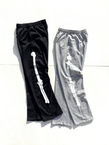 サイドに骨のプリントを施した8オンス裏起毛スウェットパンツ、"Leg Bones Open Bottom Pant"。