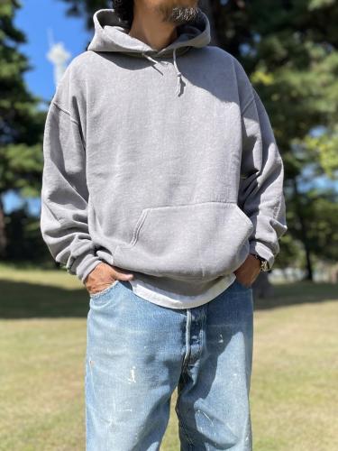 ピグメント(顔料染)を施したプルオーバーパーカー。