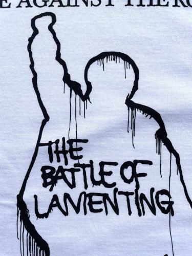 フロントに大胆に某バンドを彷彿とさせる、オマージュデザインのプリントを施したロングスリーブTシャツ。
