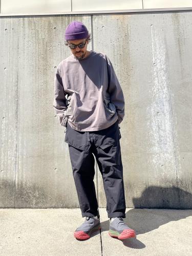 軍物のカーゴパンツをどこまで現代のテック系に昇華できるかを目指した。