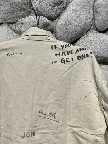 フロントの大き目なフラップポケットが特徴的な、40年代のUSアーミーのM-43ヘリンボーンツイルジャケットをベースに、メモリアルジャケットの雰囲気を注入した1着、"Memorial M-43 HBT Jacket" 。