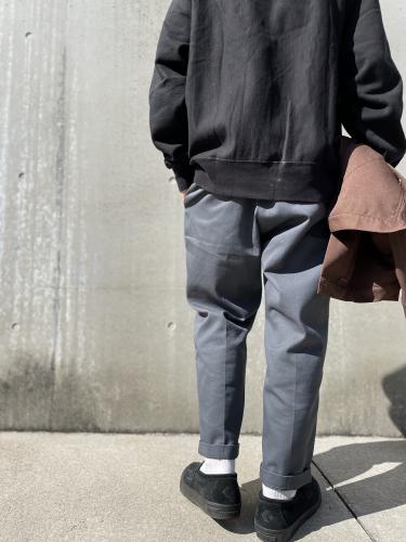 ディッキースの定番チノ"874"をベースに、程良くテーパードしたシルエットにし、更にウエストを2インチ絞りヒップ周りがふっくらとした丸いシルエットにリメイクしました。