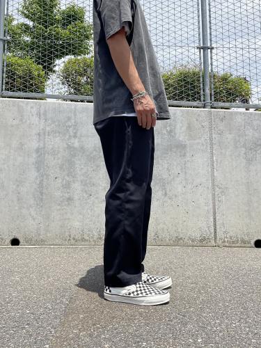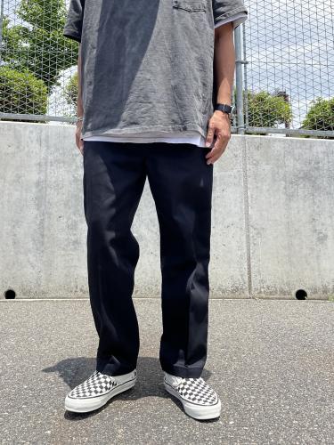 ディッキースの定番チノ"874"をベースに、程良くテーパードしたシルエットにし、更にウエストを2インチ絞りヒップ周りがふっくらとした丸いシルエットにリメイクしました。